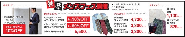 秋冬メンズフェス開催 ■場所:八木橋百貨店 4F 紳士服 ■期間:2025年11月1日(土)~11月24日(月)