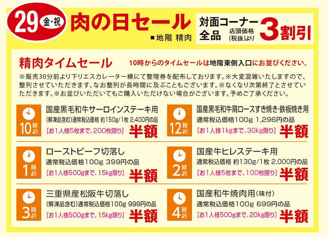 29日(金・祝) 肉の日セール