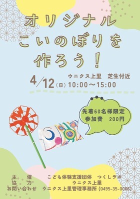 *・*・*・*・* オリジナルこいのぼり を作ろう! *・*・*・*・* 先着60名様限定 参加費200円 皆さま…