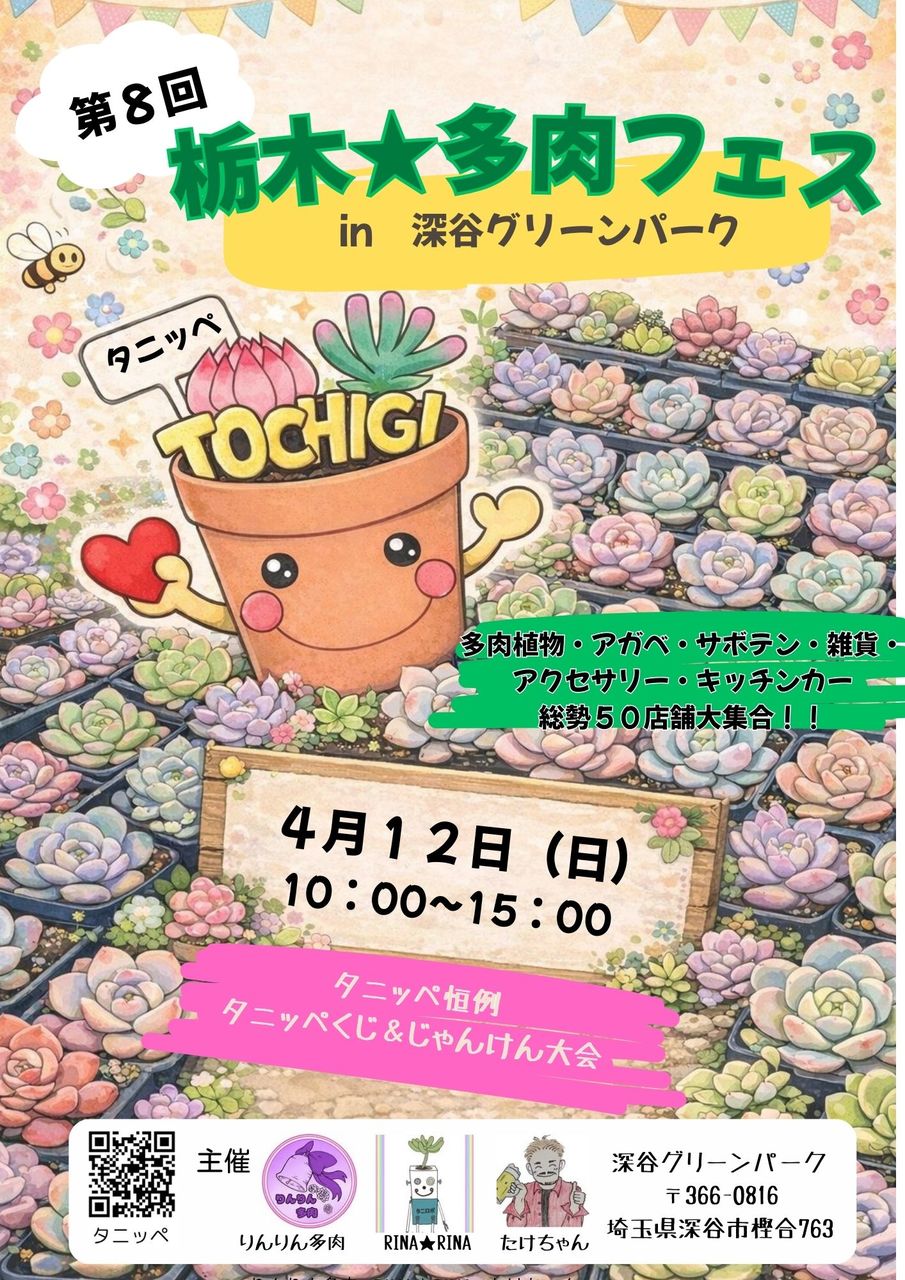 4月12日(日)深谷グリーンパーク【パティオ】10時~15時 タニッペ 第8回栃木★多肉フェスin深谷グリーンパークを…