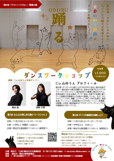 舞台版「せかいいちのねこ」公演に先駆けて、ダンスワークショップを開催します。講師は舞台にも出演するダンスカンパニーCo…