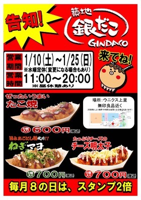 *☆*:;;;:*☆**☆*:;;;:*☆**☆*:; ウニクス上里イベント広場に 「築地 銀だこ GINDACO」登…