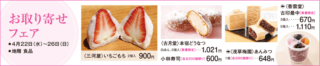 八木橋百貨店 お取り寄せフェア ■場所:八木橋百貨店 地階 食品 ■期間:2026年4月22日(水)~4月26日(日)