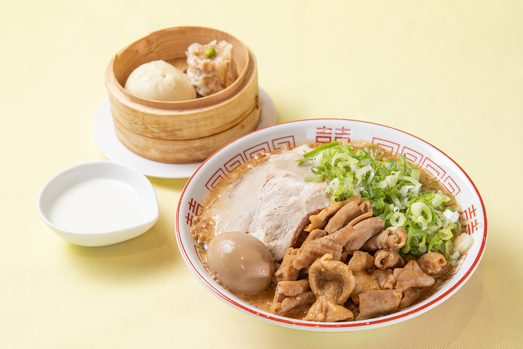 深谷太陽農園の畑でとれた深谷ねぎとホルモンをトッピングした、濃厚で食べ応えのある味噌ラーメンです。