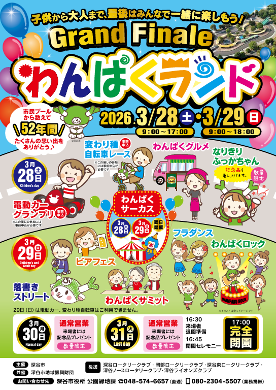 お世話になったわんぱくランドに、ありがとうの気持ちを伝える最後のチャンス!盛りだくさんのイベント内容となっているので、きっと楽しい一日になると思いますよ♪