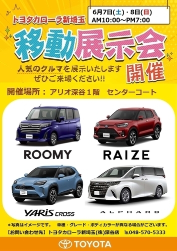 6/7(土)・8(日)トヨタカローラ新埼玉移動展示会