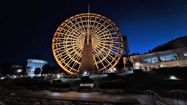 一年の12月だけのお楽しみ!かわはくのシンボル日本一の大水車がライトアップされます。暗闇の中に光りながら回る大水車はとっても幻想的。他にも個性的な建物の本館や、本館脇にある「行く春」が描かれた大陶板画もライトアップされます。敷地内にある街頭も点灯し、昼間と違い静かで雰囲気が違う、かわはくを楽しむことができます。
