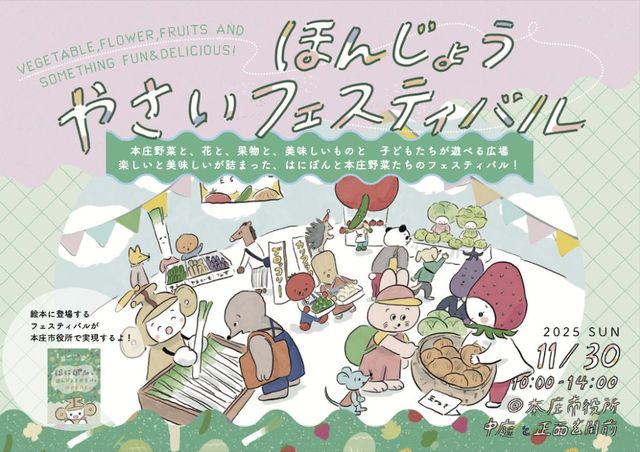 ージに描かれた「ほんじょうやさいフェスティバル」を開催します。