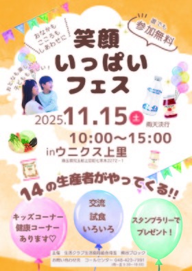 そんな笑顔いっぱいフェスがウニクス上里で開催されます。