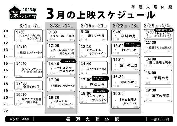 深谷シネマ3月の上映スケジュール