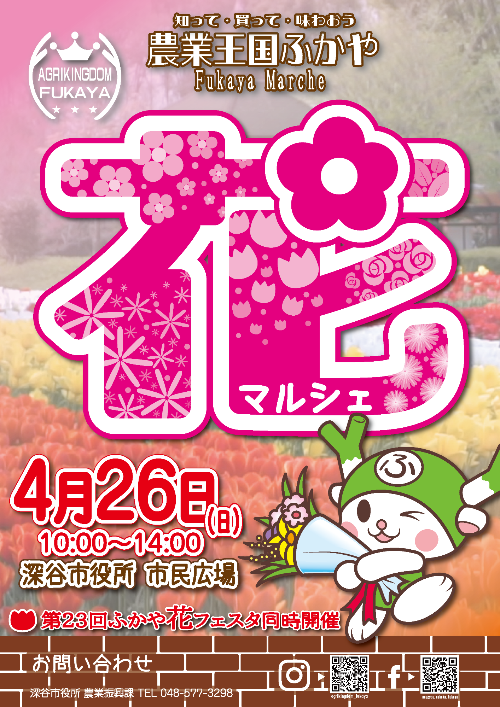 第23回ふかや花フェスタ同時開催です♪ 深谷自慢の農産物のほか、美味しいグルメも販売されます ぜひ知人友人お誘いあわ…
