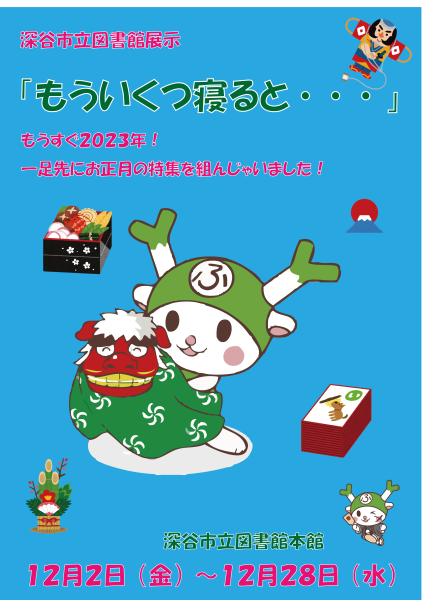 今年もあと一か月を切りました。 もうすぐ2023年がやってきます! 深谷市立図書館(本館)の12月のテーマ展示は、…