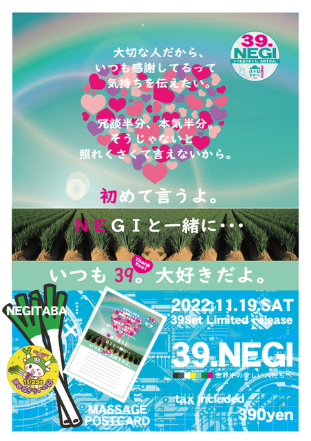 ■深谷『ねぎ束』販売 11月19日(土)~11月23日(水) ■『39.NEGI』販売 11月19日(土)~11月…