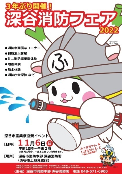 新型コロナウイルス感染拡大により開催を見送っておりました『深谷消防フェア』ですが、3年ぶりに実施することとなりました!…