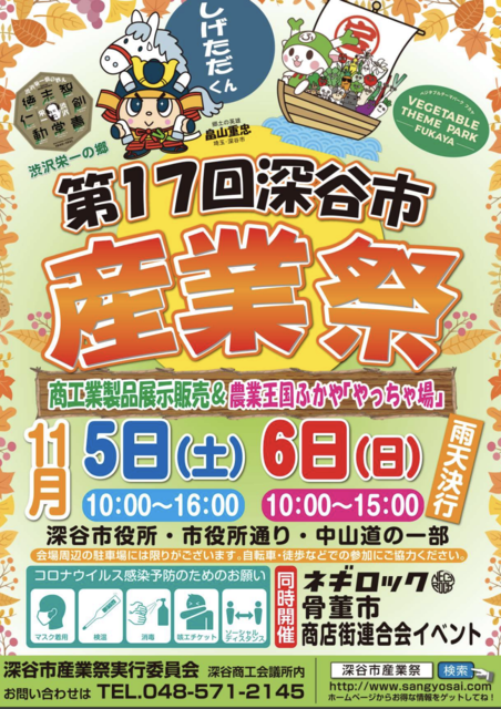 第17回深谷市産業祭 商工業製品展示販売&農業王国ふかや「やっちゃ場」 同時開催 ・ネギロック ・骨董市 ・商店街…