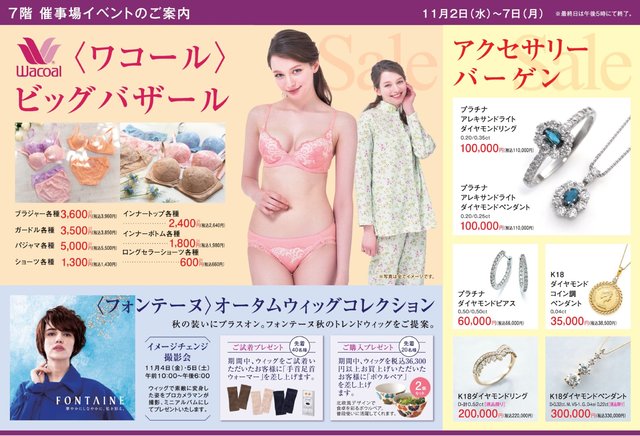 ワコール・フォンテーヌ/アクセサリーバーゲン (一部商品紹介) ~八木橋百貨店 7階催事場のご案内~ ◯Wacoa…