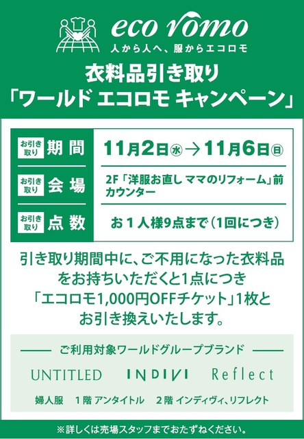 衣料品引き取り 「ワールド エコロモキャンペーン」
