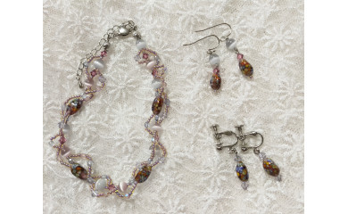 〈女屋貴子〉創作アクセサリー展 ☆スワロフスキーとガラスのネックレス ニュアンスカラーの手作りとんぼ玉、スワロフス…