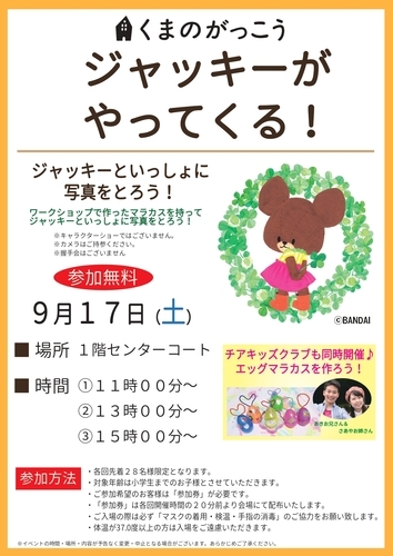 ★チアキッズクラブも同時開催♪ 「エッグマラカス」を作ろう! ※ワークショップで作ったマラカスを持って ジャッキー…