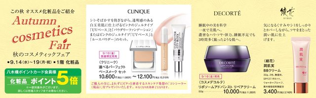 秋のコスメティックフェア Autumn cosmetics Fair この秋 オススメ化粧品をご紹介 〈CLINI…