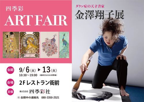 2Fレストラン街前におきまして、「金澤翔子展 & ART FAIR」を開催いたします。 ダウン症の天才書家…