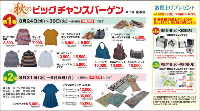 婦人服、リビング用品などを中心に、日用品・生活用品などを豊富に取り揃え。