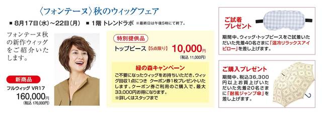 フォンテーヌ秋の新作ウィッグをご紹介いたします。