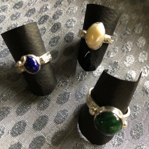 〈柴瀬藍子〉夏の彫金アクセサリー販売会 普段使いの石付きカジュアルリングです。 ・カジュアルリング 翡翠 → 1…