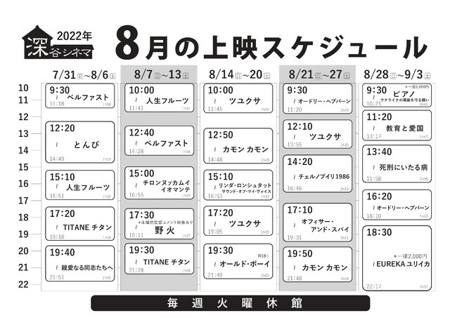 ベルファスト 人生フルーツ TITANE チタン 親愛なる同志たちへ 野火 チロンヌㇷ゚カムイ イオマンテ ツユクサ …