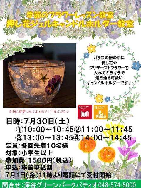 季節のフラワーレッスン「押し花ジェルキャンドルホルダー教室」を開催します!