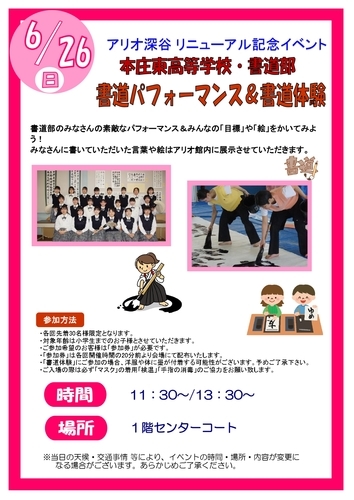 ♪アリオ深谷 リニューアルオープン記念イベント♪ 本庄東高等学校・書道部 書道パフォーマンス&書道体験 書道部のみ…