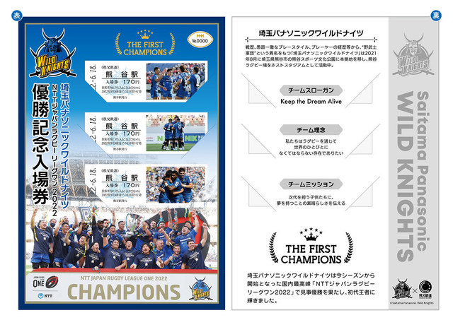 6/18(土)販売開始「埼玉パナソニックワイルドナイツ優勝記念入場券」☆感動の瞬間を硬券入場券に