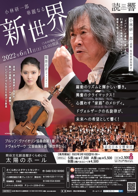 指揮:小林研一郎 ソリスト:服部百音(ヴァイオリン) 【曲目】ブルッフ/ヴァイオリン協奏曲第1番 ドヴォルザー…