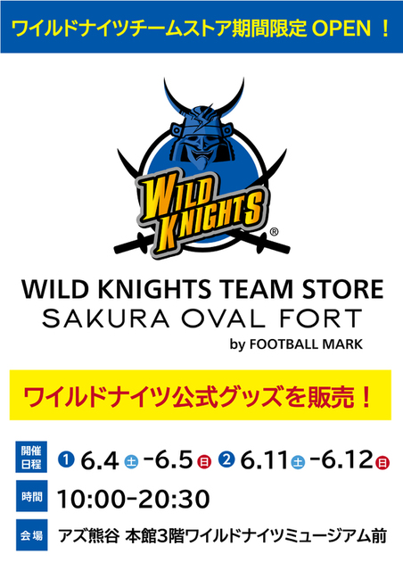 ワイルドナイツチームストア期間限定OPEN! アズ熊谷本館3階ワイルドナイツミュージアム前にて、ワイルドナイツチーム…