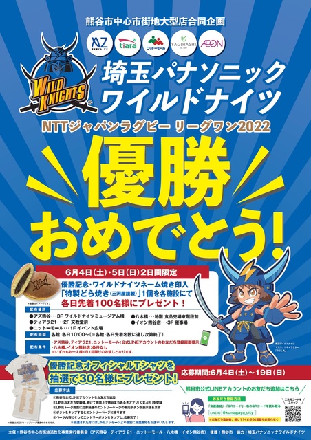 埼玉パナソニックワイルドナイツ NTTジャパンラグビーリーグワン2022優勝おめでとう 優勝を記念した熊谷市中心市街…