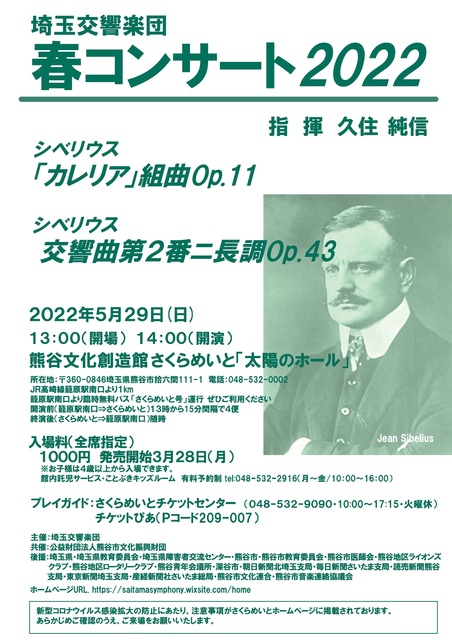 【主催】埼玉交響楽団 【指揮】久住 純信 【演奏曲】シベリウス/「カレリア」組曲Op.11、交響曲第2番ニ短調Op.43