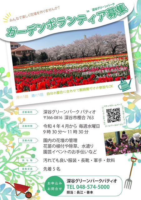パティオ園内の花壇のお手入れをお手伝いしてくださるボランティアさんを募集します! 一緒に四季折々の花を楽しめる花壇を作…