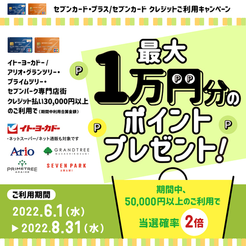【参加登録不要】 キャンペーン期間中に、アリオ/グランツリー/プライムツリー/セブンパーク/イトーヨーカドーで、セブン…