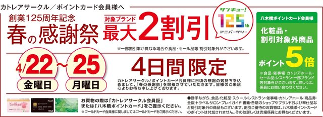 カトレアサークル・ポイントカード会員様へ 創業125周年記念 春の感謝祭 創業125周年記念 春の感謝祭 4/22(…