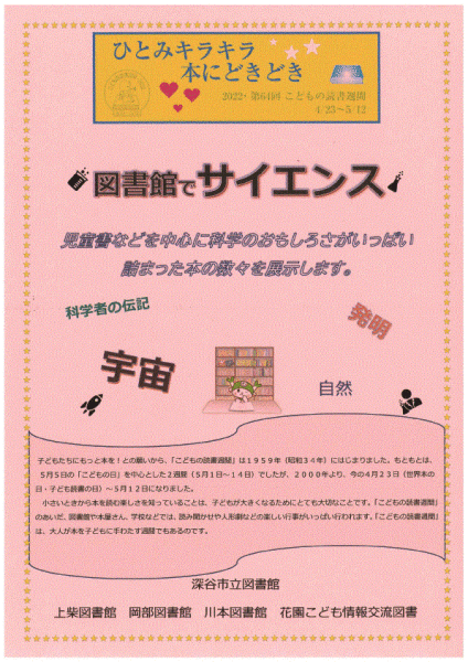 2022年 第64回 こどもの読書週間 4月23日(土曜日)~5月12日(木曜日)は、「こどもの読書週間」です。 深谷…