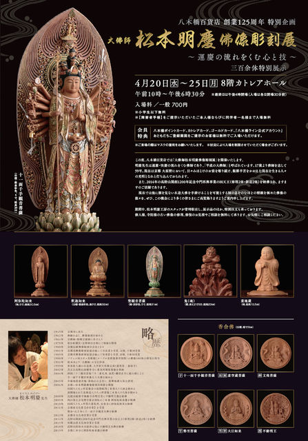 八木橋百貨店 創業125周年 特別企画 大佛師 松本明慶 佛像彫刻展 ~ 運慶の流れをくむ心と技 ~三百余体特別展示…