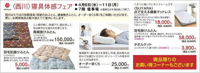 〈西川〉寝具体感フェア