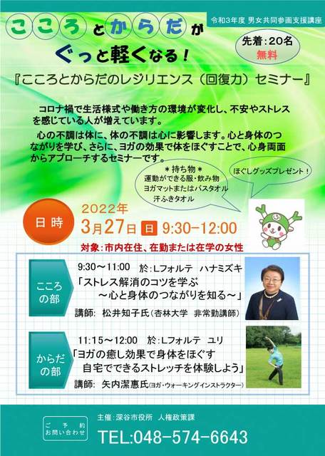 こころとからだがぐっと軽くなる「こころとからだのレジリエンス(回復力)セミナー」