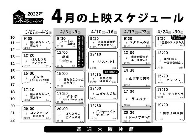 2022年03月30日(水) ~ 2022年04月05日(火)