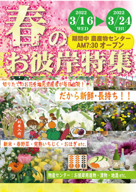 道の駅おかべ 春のお彼岸特集! 新鮮な切り花が入荷します!