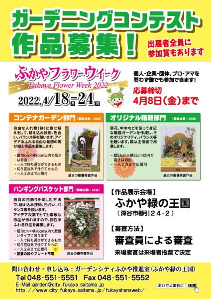 2022年4月18日(月曜日)から24日(日曜日)にふかや緑の王国にて開催される「ふかやフラワーウイーク2022」に併…