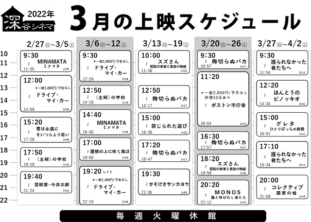 2022年03月02日(水) ~ 2022年03月08日(火)