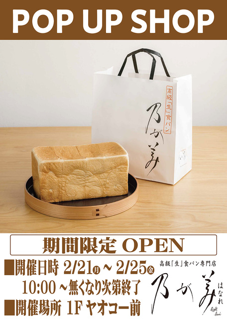 乃が美 はなれ 期間限定OPEN 高級「生」食パン専門店 POP UP SHOP 期間限定オープン ■期間:2/2…