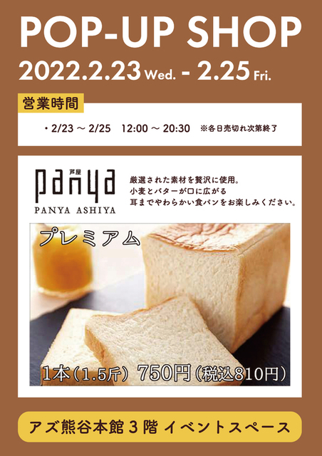 期間限定SHOP「panya芦屋」オープン! 『安心・安全にこだわって、職人の手によって作られた高級食パン』 pan…