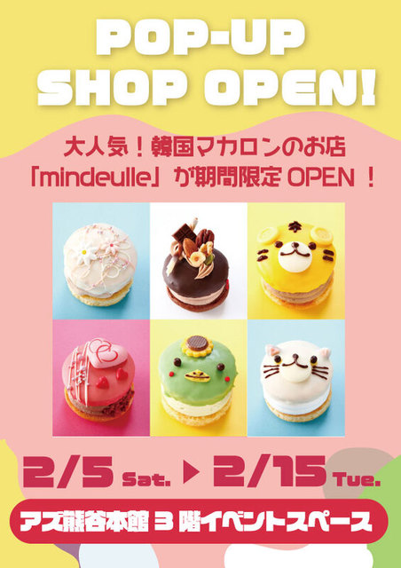 韓国マカロン専門店「mindeulle(ミンドゥルレ)」が期間限定OPEN!! アズ熊谷本館3階イベントスペースに、…